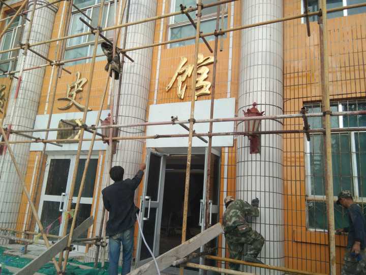 塔里木大學(xué)校史館建筑群保護(hù)修繕工程校史館位于新疆阿拉爾市塔里木大學(xué)路東150m處,約建于1962年。建筑平面呈矩形,南、北朝向,軸線長(zhǎng)度為 90.8m,寬度為20.4m。占地面積1558.16㎡,建筑面積3115.12㎡。建筑為二層砌體結(jié)構(gòu),層高3.9m,總高10.5m。