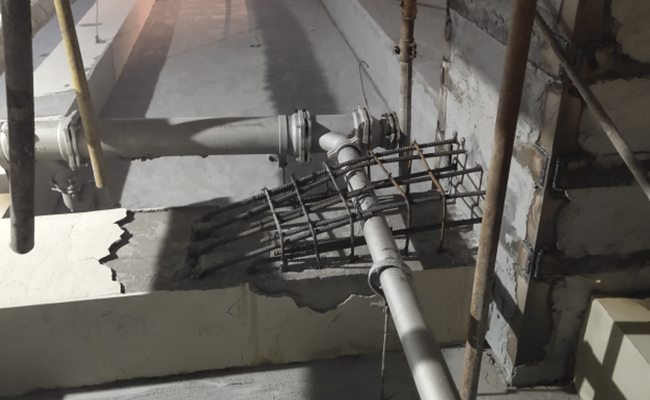 石家莊煉油廠賓館外招樓加固賓館外招樓為框架結(jié)構(gòu),樓板為現(xiàn)澆混凝土板,竣工時(shí)間為1997年,抗震鑒定類別為三級(jí),地下二層,地上七層,建筑高度27.870m;本次加固設(shè)計(jì)主要對(duì)其抗震能力及構(gòu)造方面進(jìn)行加固工作,以維持其在設(shè)防烈度下結(jié)構(gòu)必要的抗震能力和整體性;主要有加大截面加固、粘貼碳纖維布加固、粘鋼加固、包鋼加固、裂縫修補(bǔ)加固施工等